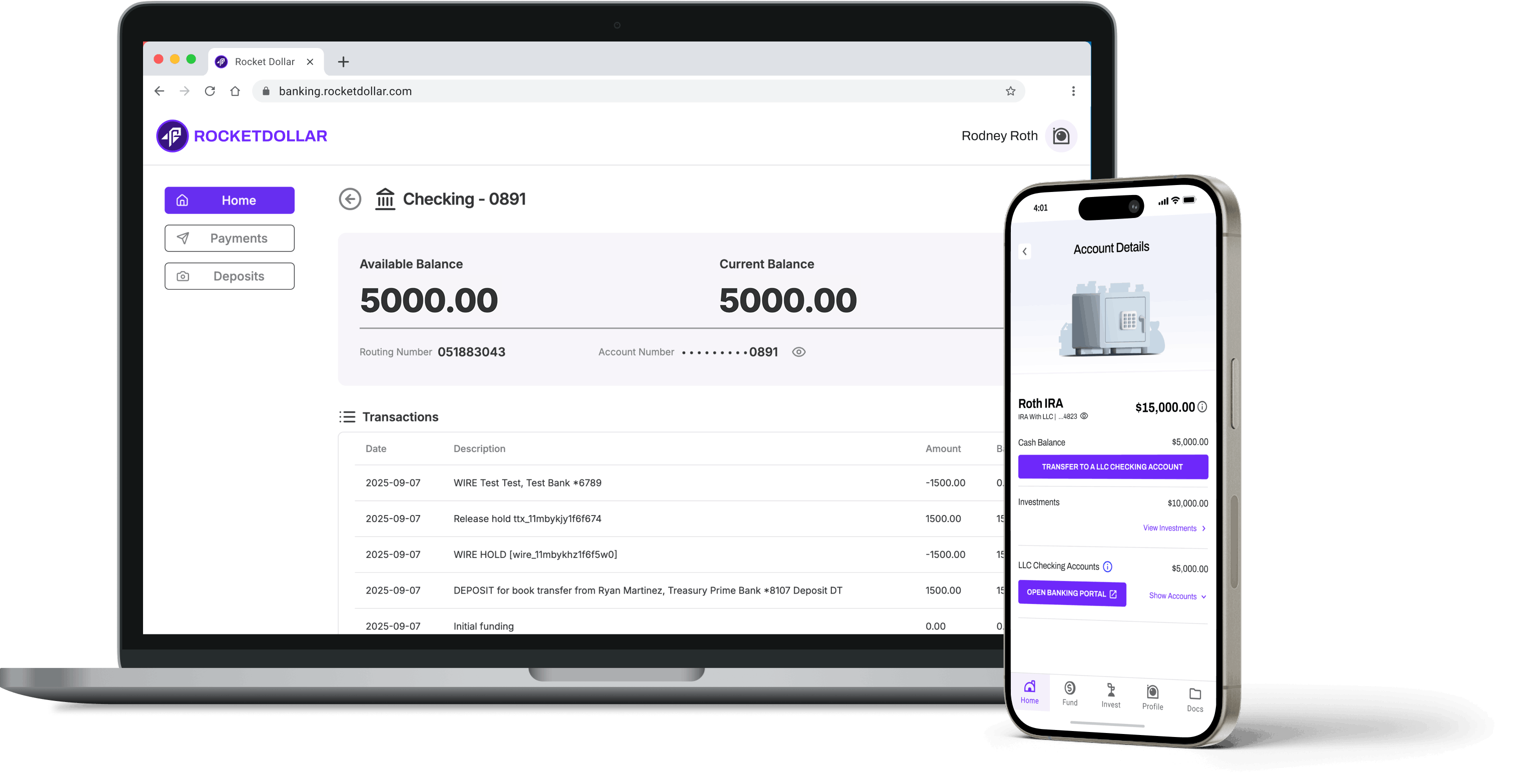 Enjoy full control of your retirement savings. Investing in real estate, crypto, private equity, and much more is as simple as writing a check or wiring funds. Plus, easily pay for small expenses related to your investments with your Rocket Dollar Gold Debit Card.